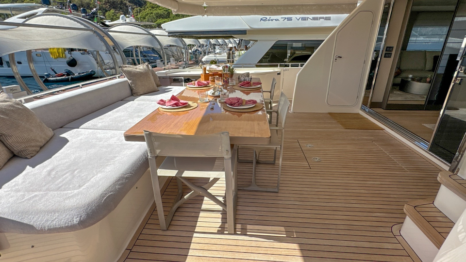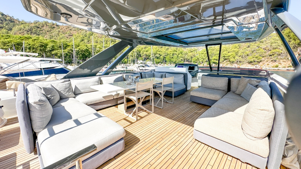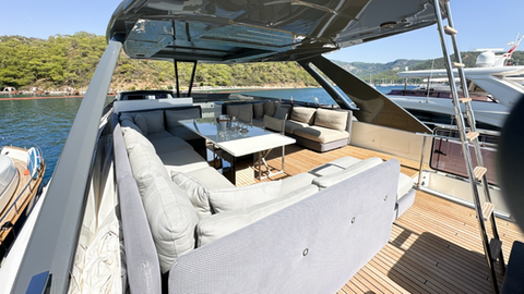 The Ferretti Yachts 850 is a 2021 luxury yacht. Powered by twin V12 MAN 1900 HP engines with approximately 491-492 hours each, it boasts a comprehensive suite of features. These include 2 x 27 kW ONAN generators, Simrad autopilot and radar, Flir night vision, Navisystem satellite antenna, Mastervolt inverters and chargers, Sidepower Fin stabilizers, and an Ultra anchor. For comfort and entertainment, it offers Siemens appliances, a Samsung 65" TV, Isotherm ice maker and fridge, a Besenzoni crane, Frigonautica beverage cooler, a Williams 395 Jet Tender, Gaggenau grills, a Mabe fridge, a Dunavox wine cooler, and a Bosch washer/dryer.